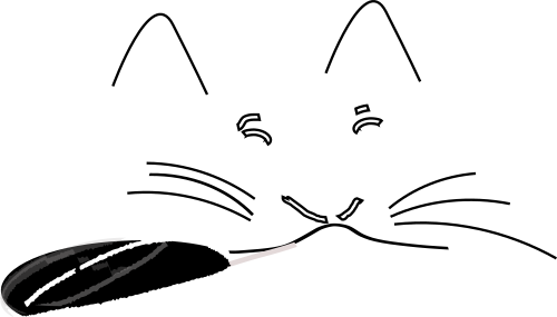 A quickly made illustration of a cat with a bird's feather.